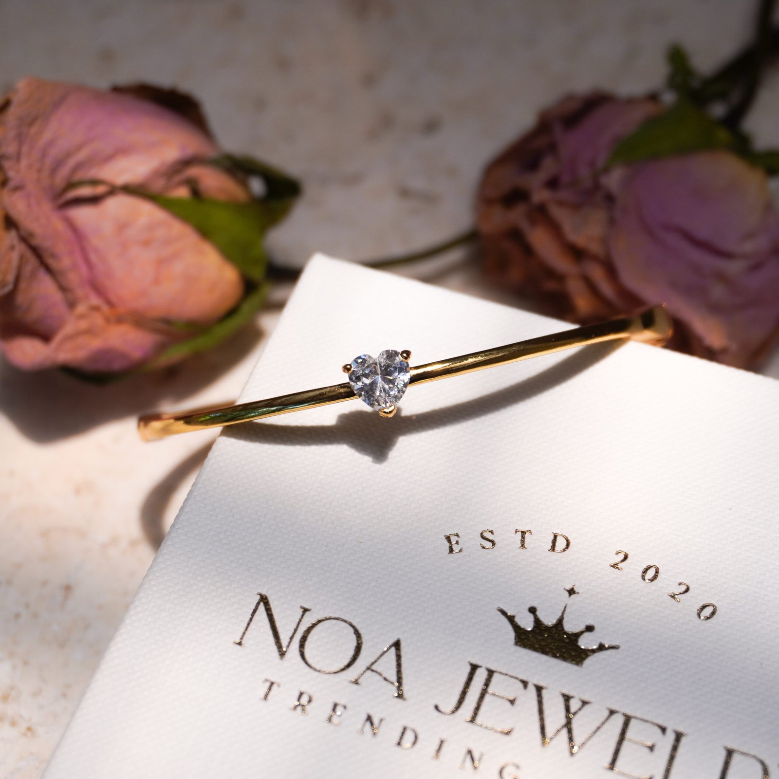 Brazalete de acero inoxidable con circonia en forma de corazón