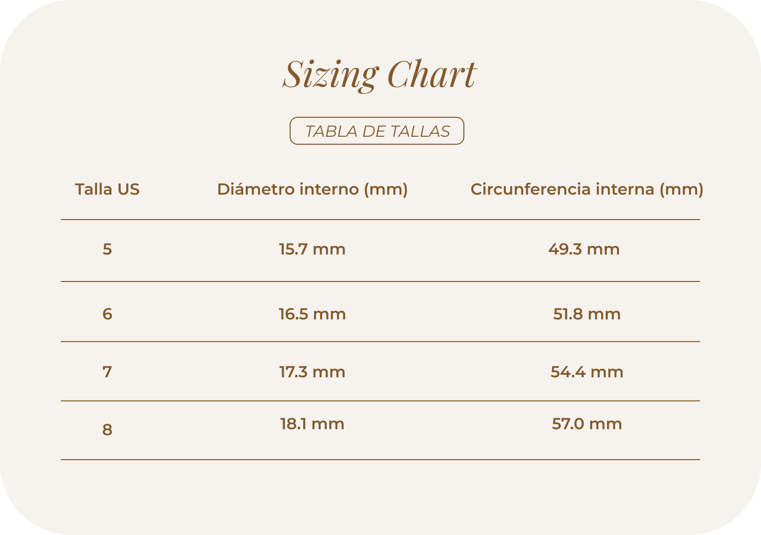 – Tallas: 6, 7, 8