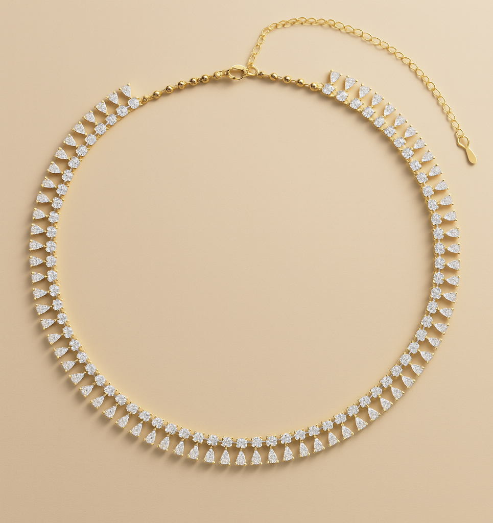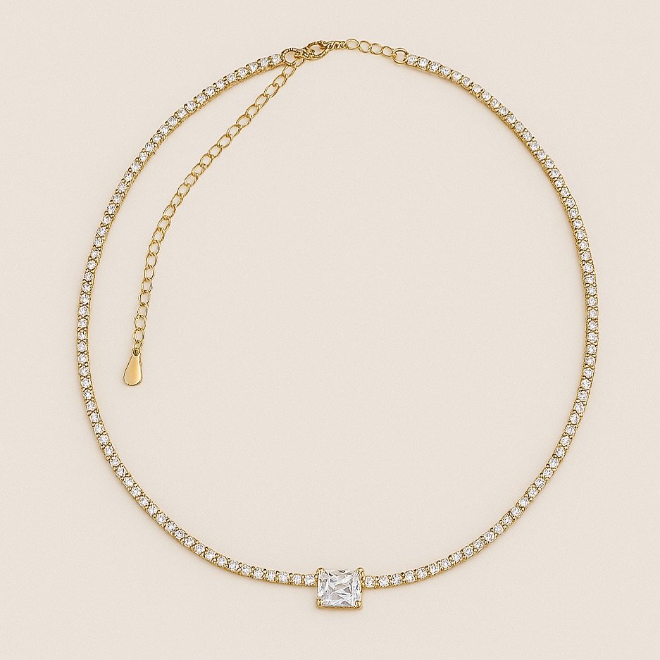 Choker plateado con cadena fina y un delicado cristal en forma de corazón al centro que aporta un brillo sutil y encantador.