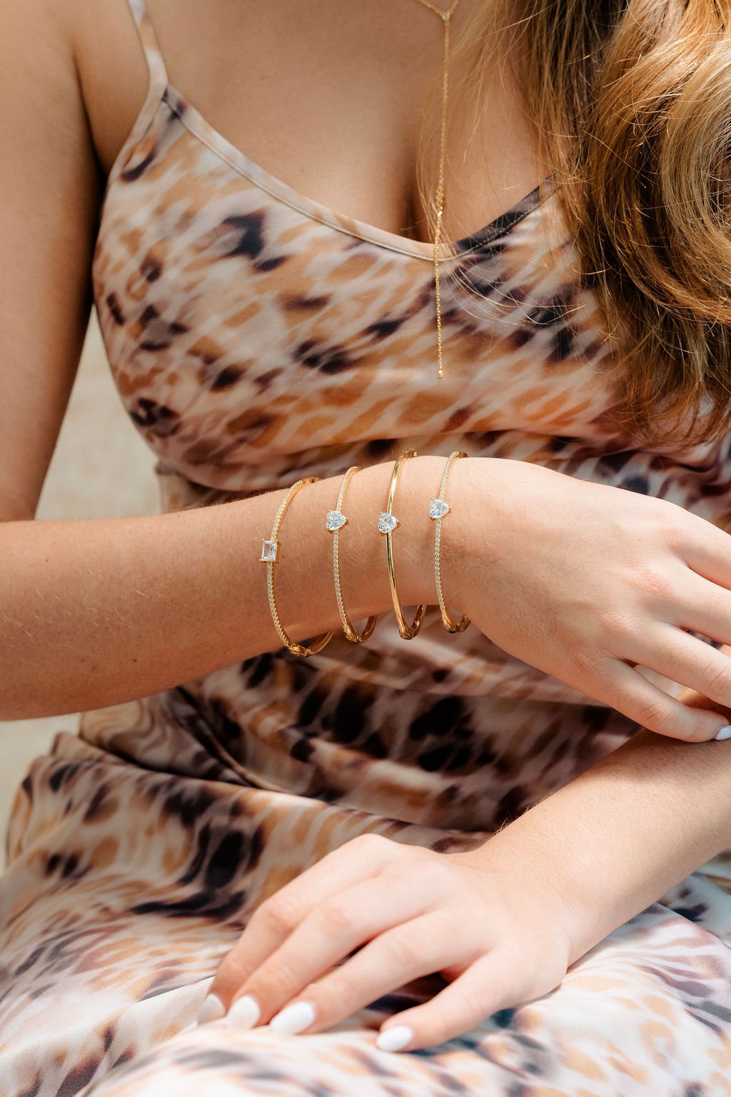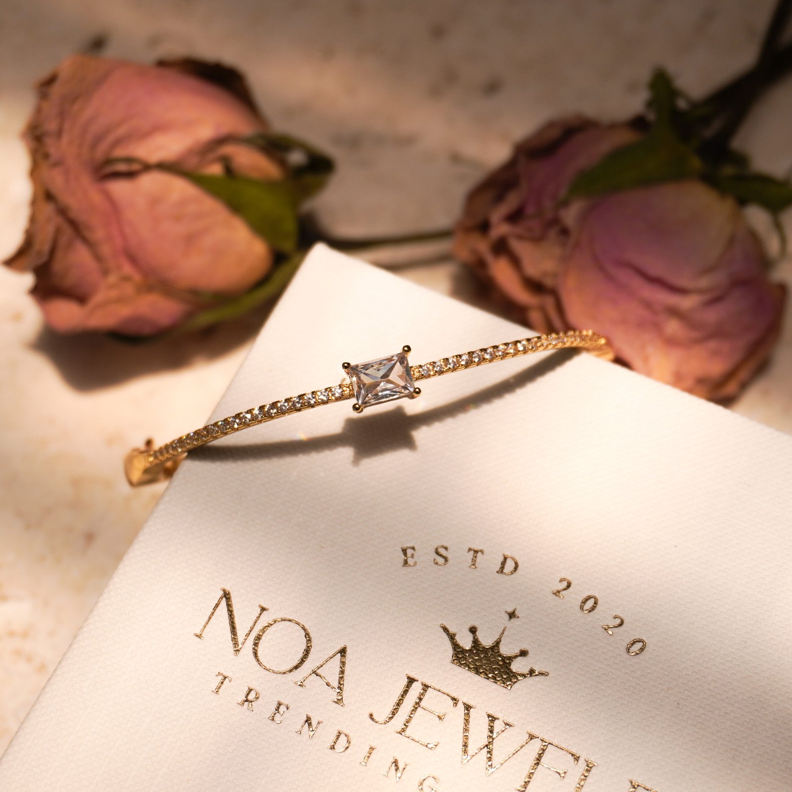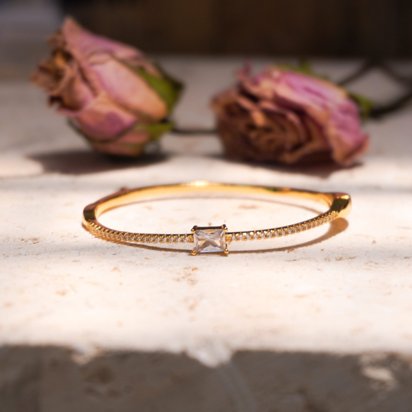 Pulsera dorada con un delicado brillo de circonias y un cristal central que ilumina con sutileza y elegancia.