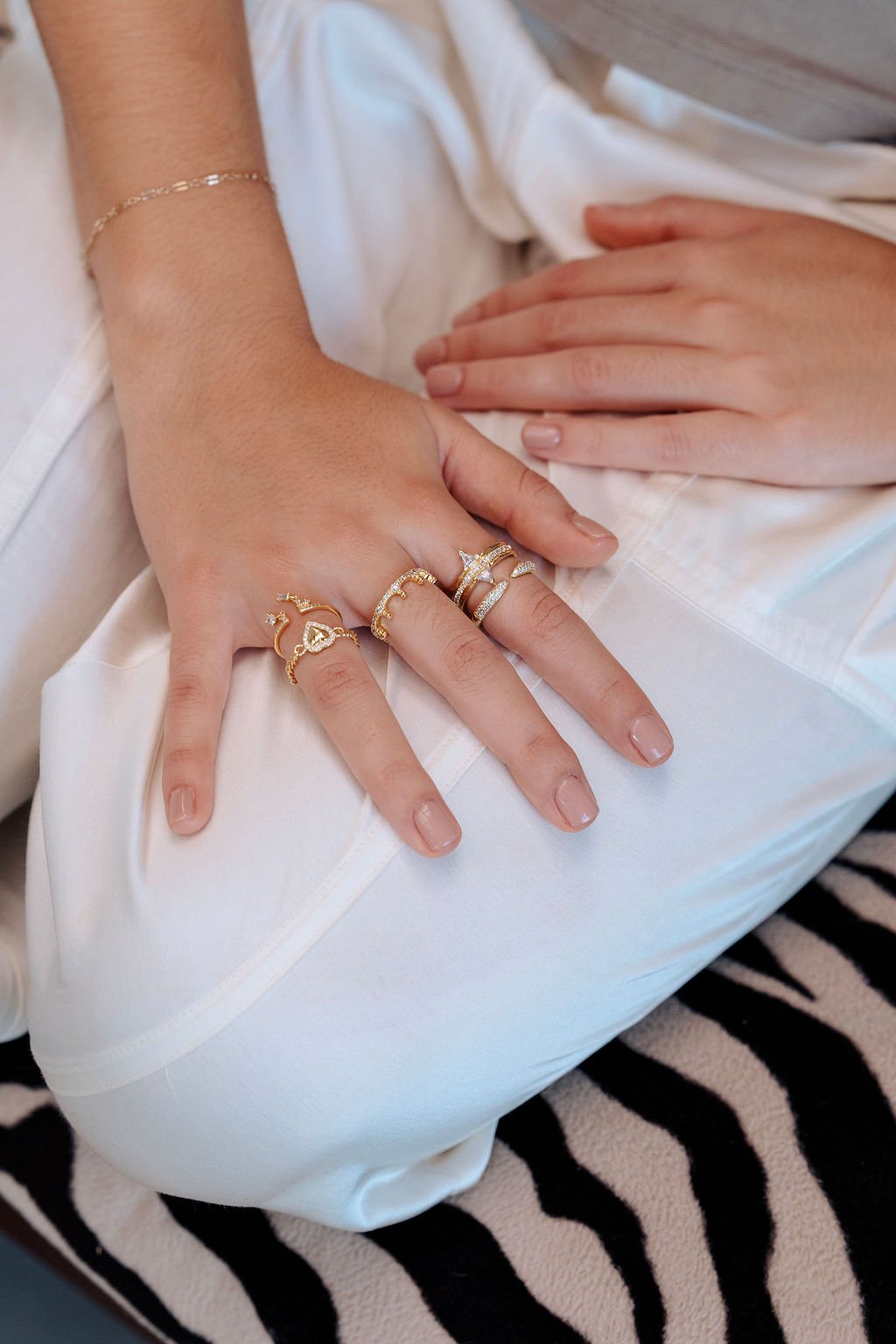 – Material: Latón – Baño: Oro 18K – Piedras: Circonias cúbicas de alta calidad – Color: Dorado – Talla:6, 7, 8